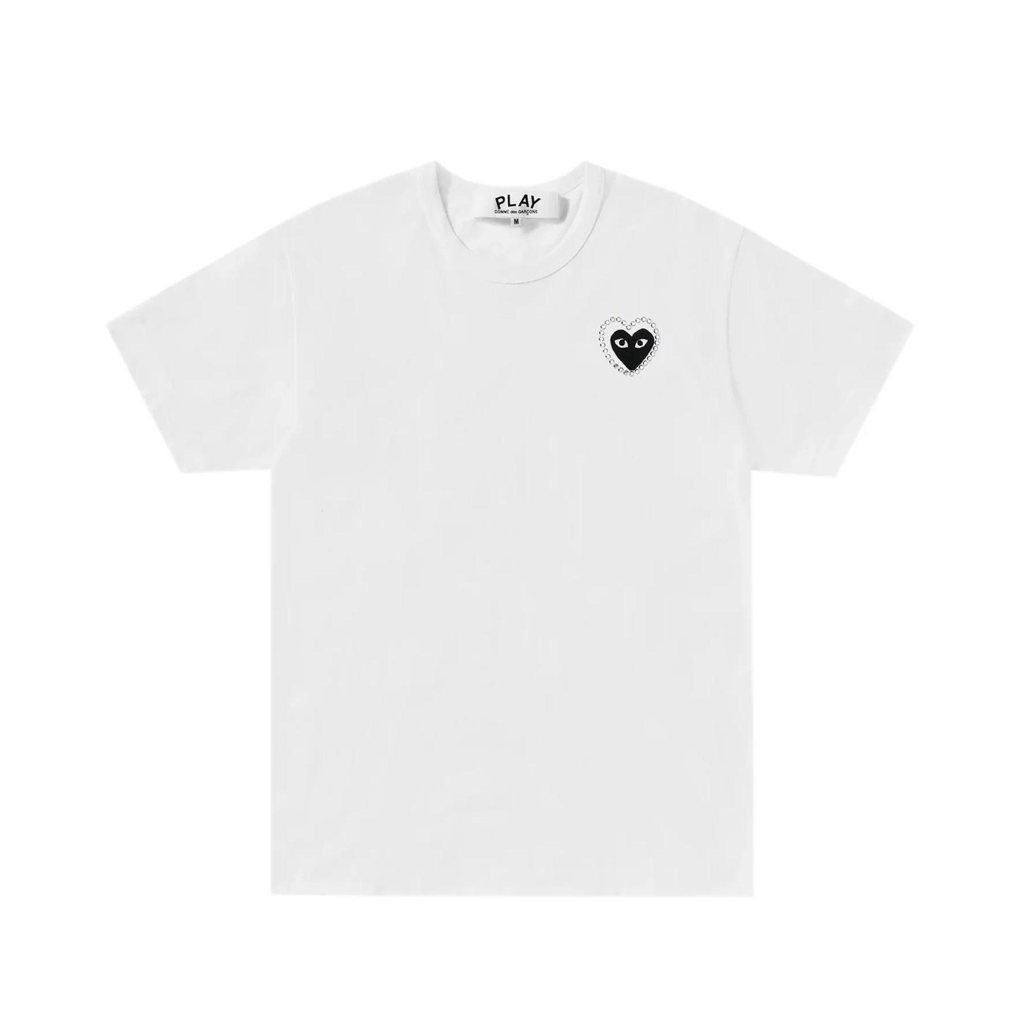 Elevate your everyday style with the Play CDG (Comme Des Garçons) Emblem X Rhinestone T-Shirt, featuring the iconic heart logo enhanced with bold rhinestone detailing. Made from premium cotton, this tee delivers a soft, breathable feel with a standout design that blends luxury fashion and streetwear.